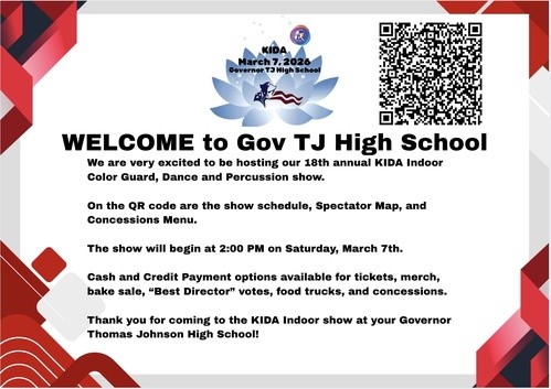 We are very excited to be hosting our 18th annual KIDA Indoor Percussion, Dance, Color Guard Show at 2pm on March 7, 2026. Scan the QR code for more information.